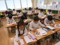 新年1日目、書き初め大会です。みんな真剣に丁寧に書いています。