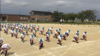暑い日差しの中、来たる運動会に向けて練習に励んでいます。5・6年生で心を一つに、動きを一つにする団体演技を本番で披露できるよう頑張っています。暑さにも負けず、風の強さにも負けず、砂の痛さにも負けぬ、丈夫な心と体で、195人が一生懸命、技に磨きをかけています!