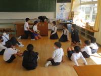 10月13日(木)後期たてわり班仲良く会が開かれました。後期のメンバーと親睦を深めるために、自己紹介や単純なゲームをして遊びました。6年生はCDを鳴らしてバクダンゲームを行い、当たった子には+αの自己紹介をしてもらうなど、工夫していました。新しい班長さんのもと、掃除場所をピカピカにしていきましょうね!