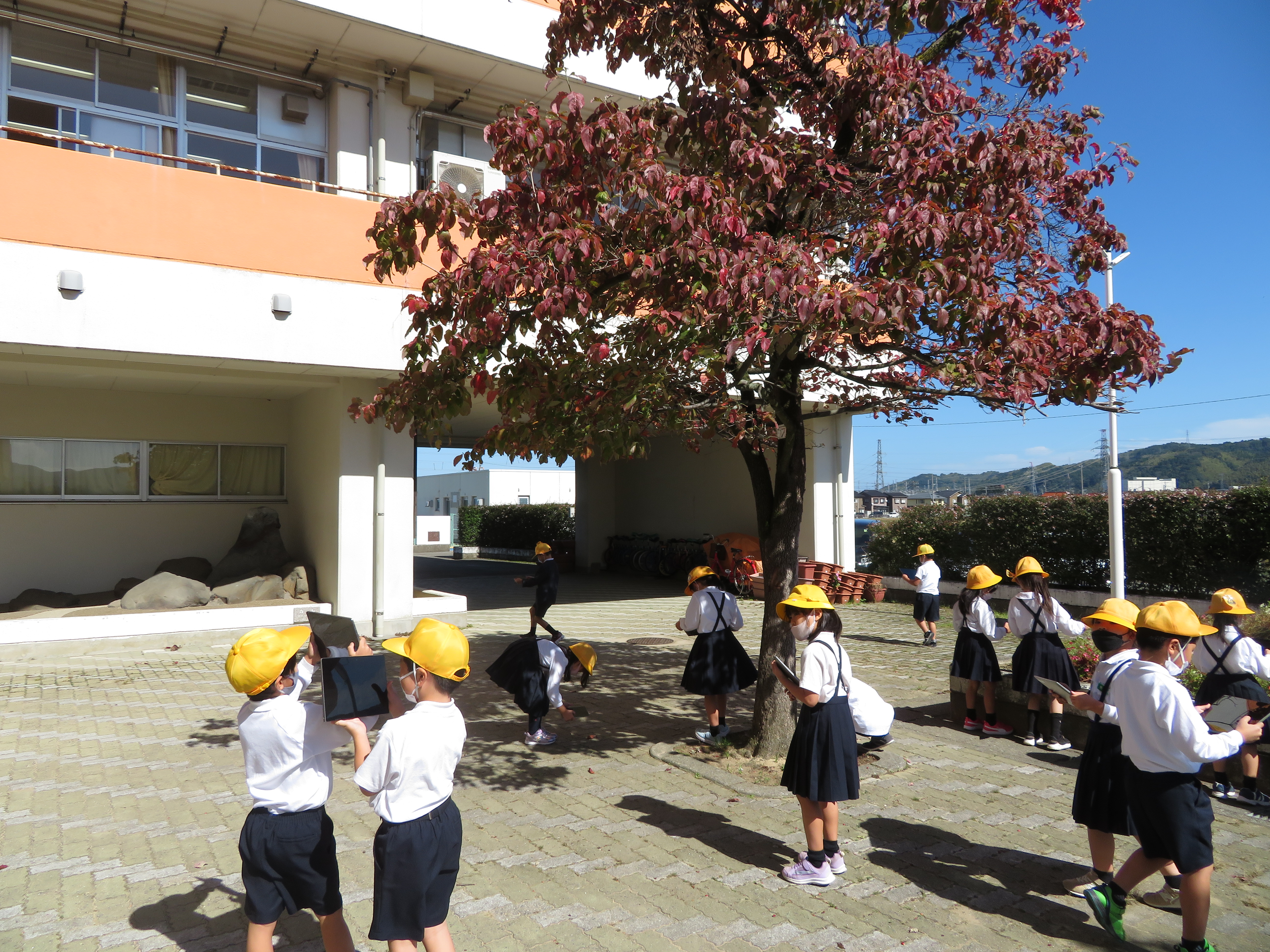 ③生活の学習では、秋見つけをしています。夏との違いを探し、GIGAパソコンで写真を撮っています。落ち葉やトンボ、雲などを撮っていました。家の近くで見つけた秋を紹介してくれる子や、持ってきたあきのものを見せてお話してくれる子もいました。来週から、あきのものでおもちゃを作ります。