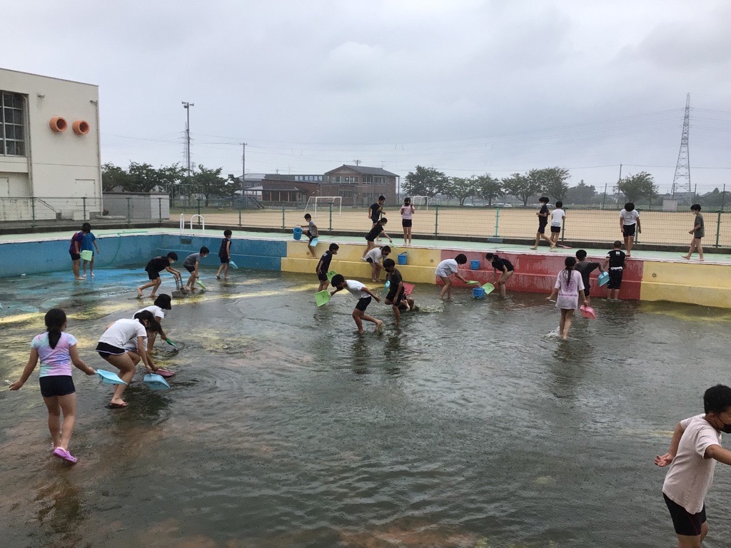 5年生がプールをきれいに掃除しました!