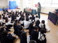 1月14日に1年生は、文庫おひさまはらっぱの飯森先生によるお話会に招待していただきました。