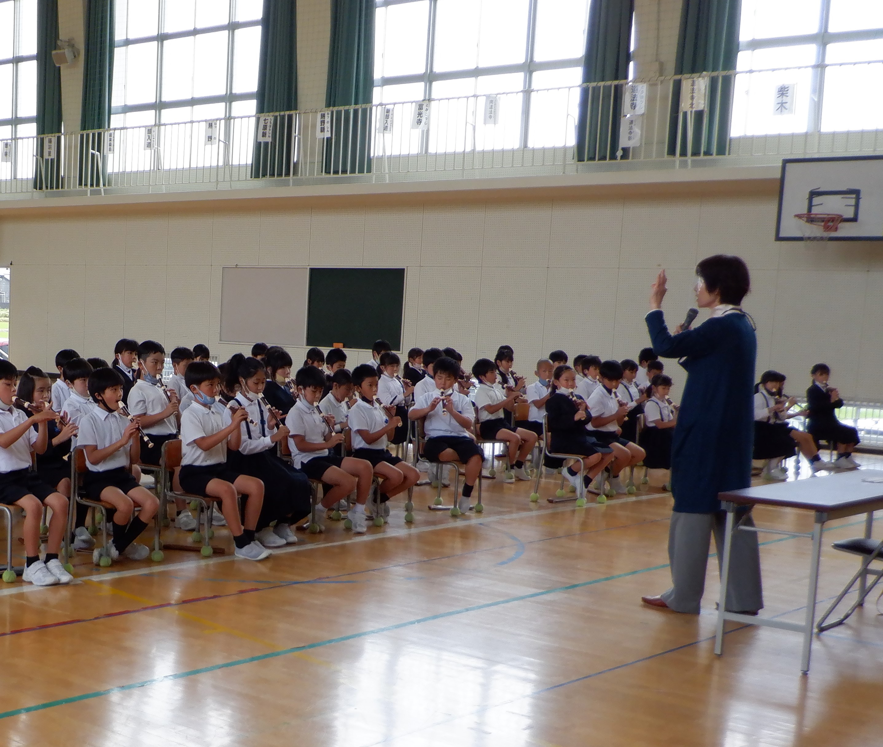 6月7日(火)、3年生のリコーダー研修会が開かれました。密を避けるために体育館で行いました。中村俊子さんに指導を受け、息・舌・指の3つのポイント教えてもらい、持ち方やタンギングなどの練習をしました。先生の演奏も聴かせていただき、子どもたちは目を輝かせて聴き入っていました。今年に入って始まったリコーダーの演奏をさらに上達させようと、みんな一生懸命に練習に励んでいました。リコーダーは来年の音楽会でも使われることでしょう。指使いを学んですてきな音を奏でてください。