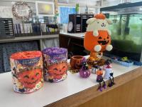 R7の本屋大賞や各種イベントの案内がありました 以前紹介した手作り作品も増えてました! 図書室もハロウィンを待ってます