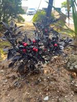 南天…?でも全身真っ黒なんです。実も赤いのと黒いのとがついてます。