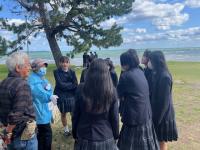 23日(木)、2年生が朝から長崎原爆資料館を訪れていたこの日、1・3年生は珠洲市まで震災学習に出かけました。あの日から1年と10か月という時間が流れた能登です。とても天気が良く、空も海も本当に青く美しい日でしたが、バスからは多くの仮設住宅や石が落ちてしまった鳥居やお墓、ブルーシートをかけている屋根もまだ多く見られました。変わり果てた見附島には本当に胸が痛みました。それでも奥能登芸術祭常設作品を復旧させ、長い避難所生活の中からも周りの人の優しさや繋がる(つながる)ことの大切さを見出して、未来に向かって歩いている珠洲の方々の言葉に、人間の強さと大きさを感じることができました。