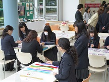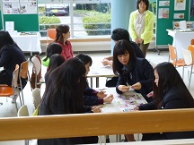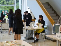 小学生11名と本校ハンドメイド部がグループに分かれて、一緒に料理を行いました。包丁を持つことが初めての小学生たちに、丁寧に教えるのは大変でしたが、楽しいひと時を過ごすことができました。当日は、お米を研いでごはんを焚いて、シチューと杏仁豆腐をみんなで食べ、どれも美味しかったです。