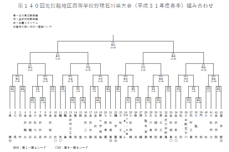 今シーズン最初の大会である、第140回北信越高等学校野球石川大会の組み合わせ抽選が行われました。