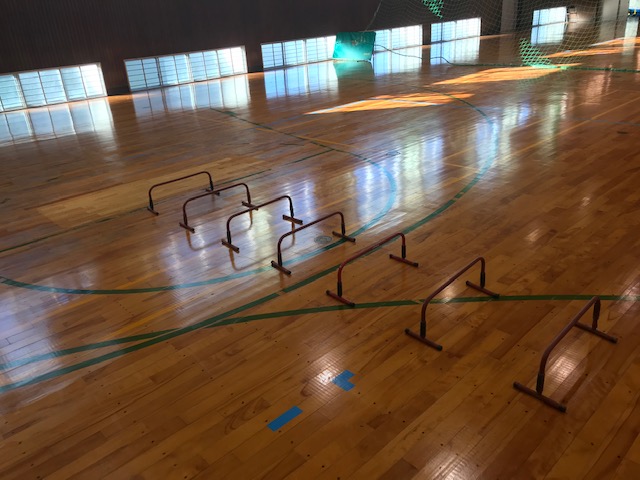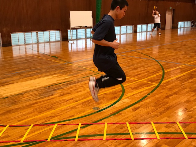 金沢向陽高校野球部ではラダーやミニハードルを使った練習をしています。