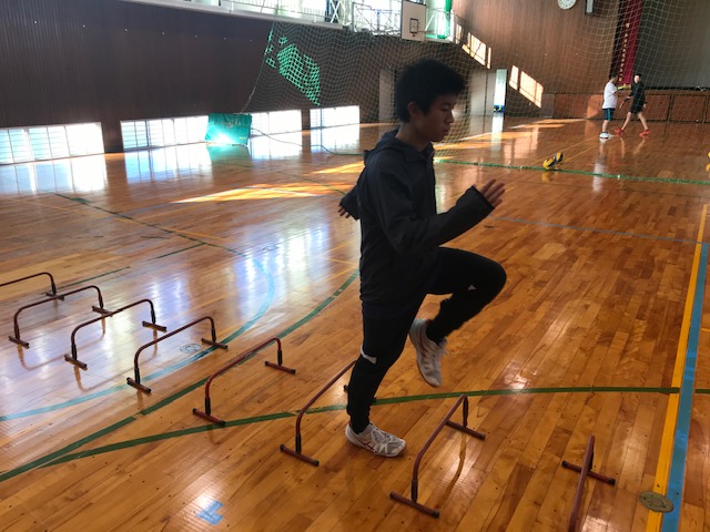 冬場の練習は筋力トレーニングや走り込みが中心ですが、こうした器具を用いた練習を行うことによって身体を柔軟に使えるようトレーニングをしています。
