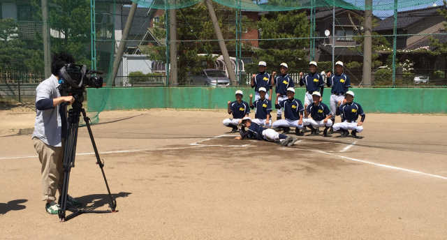 本校野球部員が、人数が少ないながらもひたむきに取り組む姿勢をメディアに密着取材していただきました。