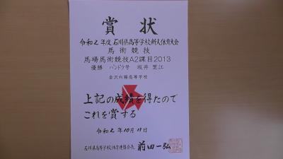 6月19,20日に石川県馬事公苑で北信越大会が行われました。