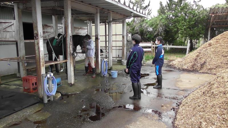 復旧作業には馬術部員もかけつけ、暑い中ではありましたが、