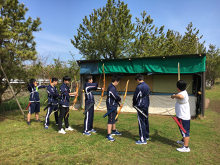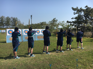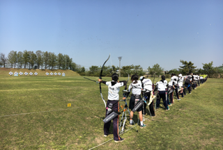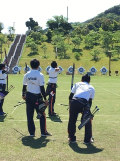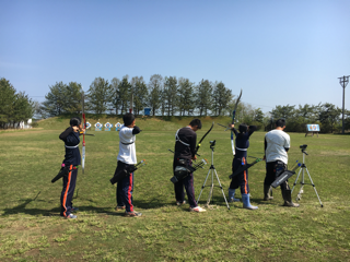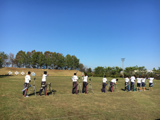 晴天で少し汗ばむ中、アーチェリー部は春季大会に出場してきました。