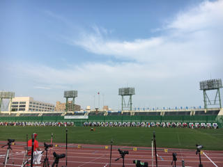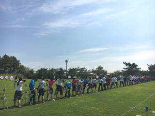 インターハイアーチェリー競技の公式練習と開会式が本日行われました。