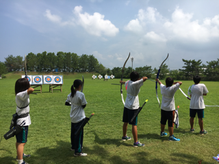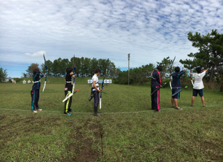 いつもの校内ではなく、県のアーチェリー場での練習にワクワクした様子でした。
