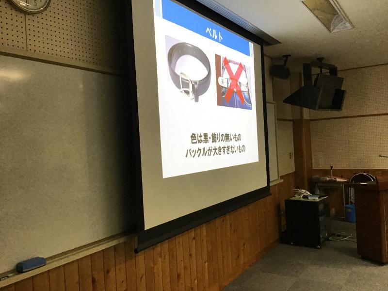 制服の意味や正しい着こなし、制服の手入れや管理の方法などたくさんのお話をしていただきました。