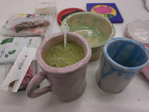 自分の作った愛着のある作品でお茶を飲みながら、友人の作品を鑑賞していました。