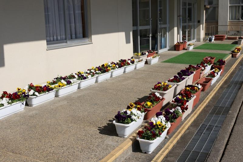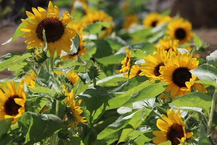 今、玄関前や中庭では、本校を象徴する花、向日葵が、