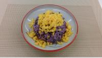 各校で考案・調理した「スイーツ2品」を出し合い、各種スイーツのコンセプトや工夫した点などを解説し、味の感想や食感をICTを活用し全員で共有しました。