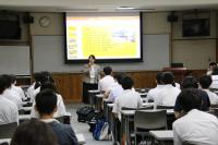 本日、1年生対象に着こなしセミナーが行われました。TPOに合わせて、オンタイム・オフタイムを考え、正しい制服の着こなしをしてほしいと思います。お互いに着こなしチェックもしました。
