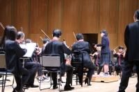 爽やかな秋晴れの午後、オーケストラアンサンブル金沢の演奏を全校生徒で楽しみました。指揮者の平林遼さんの軽妙な司会で運ばれたステージは、3年生の蔵田聖矢さんと横井実桜さんによる楽しい指揮者体験を挟みながら、OEKの皆さんの動きや表情と、迫力のある音、繊細に奏でられる音を生で楽しむことができました。