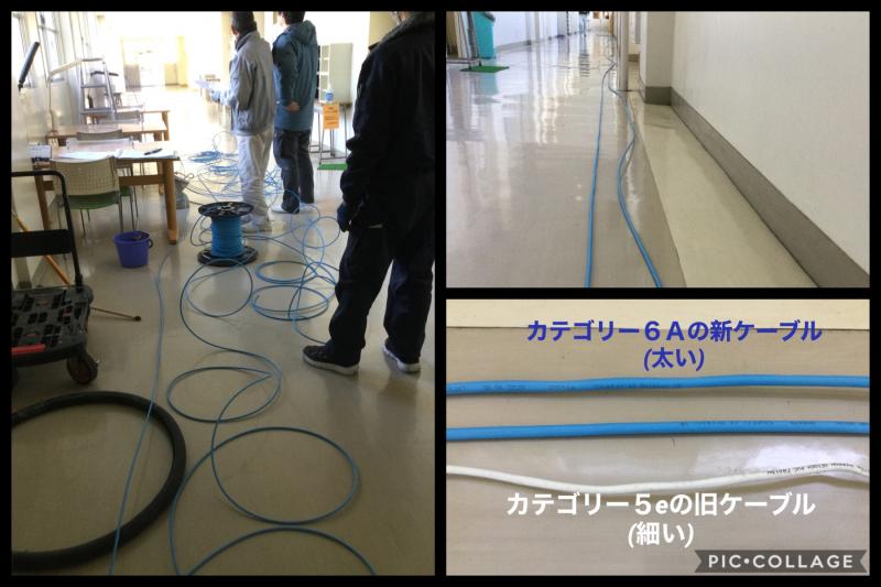 いま校舎のいたるところで工事中です.新しいLANケーブルを配線しているのです.