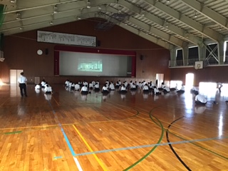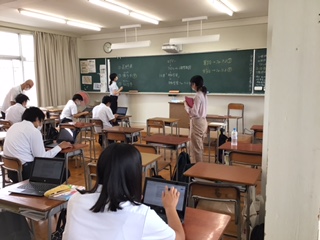 平和学習 DVDを体育館で視聴した後、グループに分かれクロームブックで各都市の戦災について調べ学習を行いました。