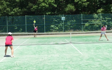 西部緑地の両テニスコートで開催された。男女別会場で、それぞれの目標に向け奮戦中!