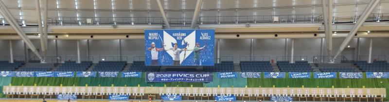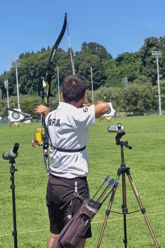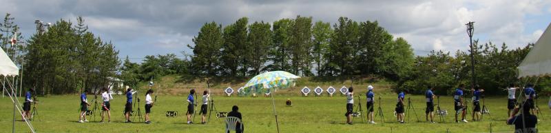 今日は公式練習と用具検査でした。とても暑い日となりましたが、本会場で実際に射つことができるため、明日の本番に向けて良い練習ができました。