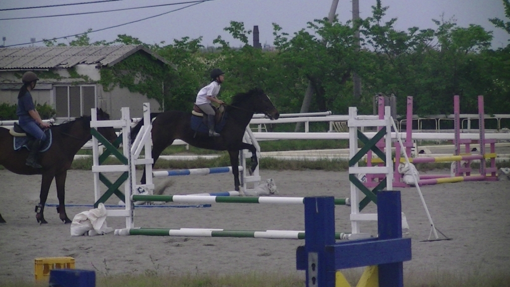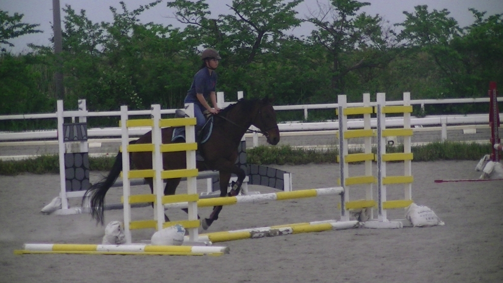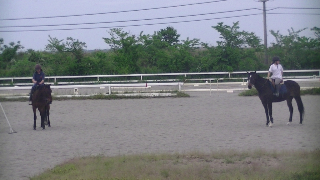 三輪さんです。坂井さんが出番を待ち、先輩の騎乗ぶりを見守っています。