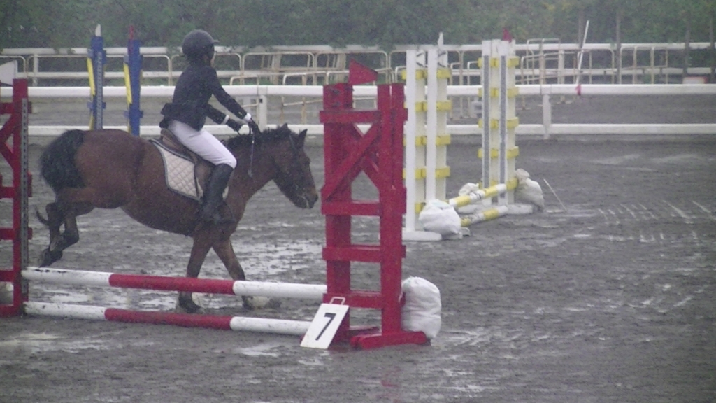 高さ70cmの障害物を飛び越え、タイムと減点の少なさを競います。