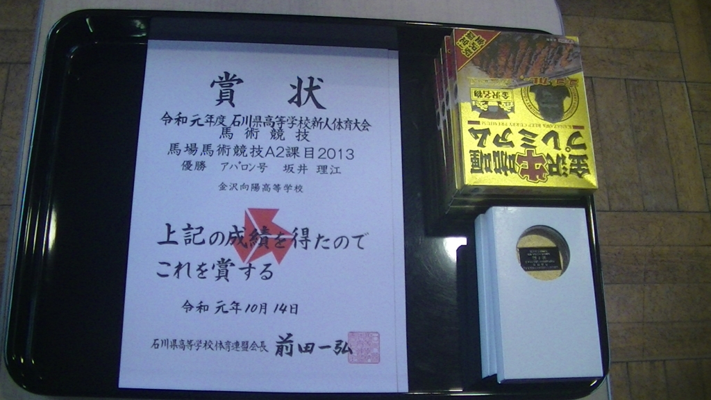 賞状とメダルです。今回は副賞としてゴーゴーカレーのレトルトパックが