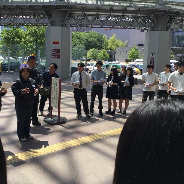 JRC・ボランティア同好会と生徒会の役員、みんなで呼びかけをしました。