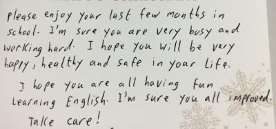 先週、向陽生と職員宛てに大きな段ボール箱が1つ、国際郵便で学校に届きました。