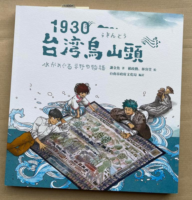 左の写真は、'20年9月下旬、嘉南大圳着工100周年/竣工90周年記念として台南市政府文化局が制作し台南市内の小学生に配布され、'22年2月に日本語版として発売された「1930 台湾烏山頭」という絵本です。表紙の左の人物が八田與一技師。右の人物は大きく広げられているタペストリーを描いた画家の伊東哲氏。彼も金沢出身で技師の親戚にあたります。中央の娘は内緒。後半は貴重な資料が多く載せられており、とても判り易いです。この絵本には、台南の人達から見た烏山頭への思いが込められています。本校図書館にも有りますので、機会が有りましたら一度ご覧下さい。