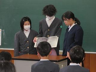 今日の全校集会は、保健給食委員会の発表です。県内でもインフルエンザの感染が拡大し、学級閉鎖・学年閉鎖の記事が新聞に載るようになってきました。タイムリーな発表です。