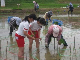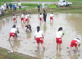 5・6年生が古代米の田植えを行いました。
