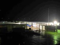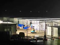 仮設住宅の建設現場で、夜8時頃明かりをつけて重機が動いていました。