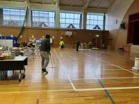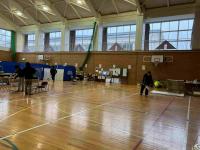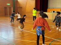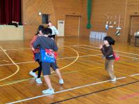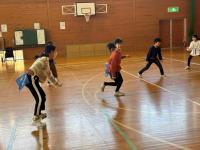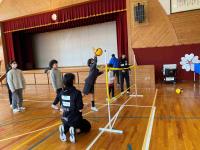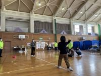 避難所の皆さんのご協力で、体育館で思う存分キャッチボールができました。