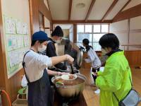 東陽中避難所の炊き出し体験に3年生・4年生・6年生が参加しました。