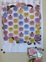 ミスタードーナツの店員さんたちからということで地域の方が届けてくださいました。達者なイラストと温かいメッセージ、職員にはコーヒーもいただきました。