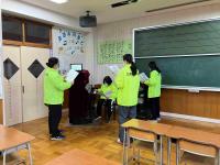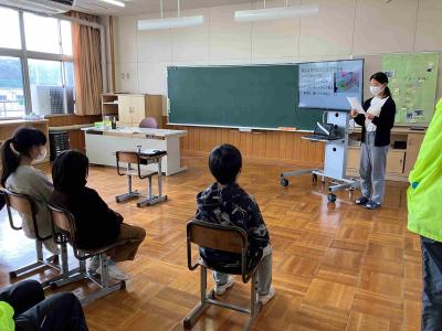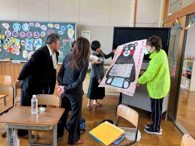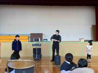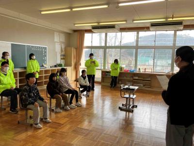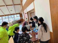 4年生や先生、県の理科指導の先生、昼食の汁物を作る熊本支援チームの方々に発表しました。