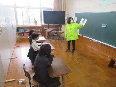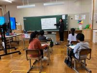 4年生は、県の英語指導の先生とお気に入りの場所を紹介する学習をしました。