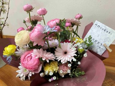 今日で最後ということを聞き、職員でありがとうメッセージを書いて届けました。