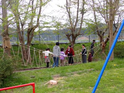 ロープで即席のアスレチック遊具も作ってもらいました。