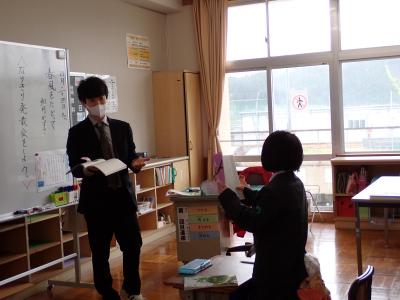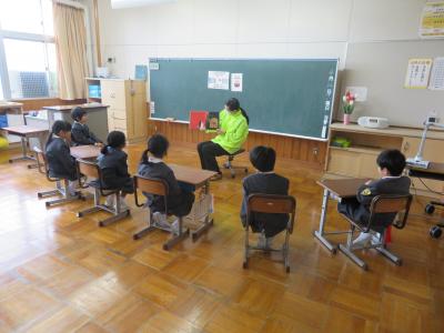 低・中・高学年に分かれ、教員が読み聞かせをします。