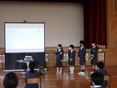 4月16日のお昼に行われた、前期児童会委員長任命式の様子です。