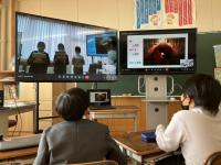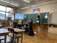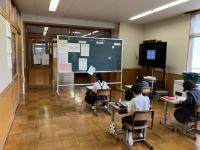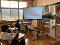 珠洲市立宝立小中学校4年生3人と町野小4年生2人でオンライン合同授業をしました。
