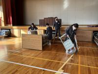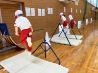 4・5年生で、体育館や玄関、6年教室の準備をしました。